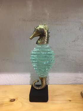 Υλικό: Μπρούντζος, γυαλί, ηφαιστειακή πέτρα Σαντορίνης